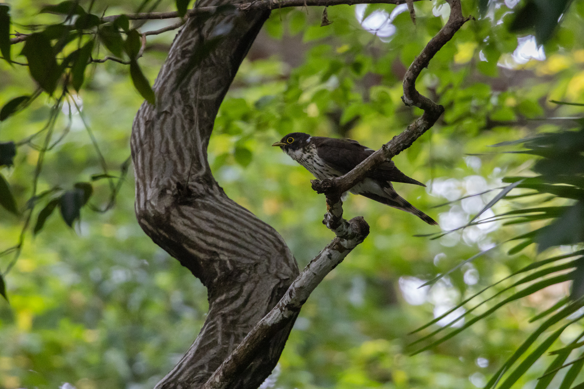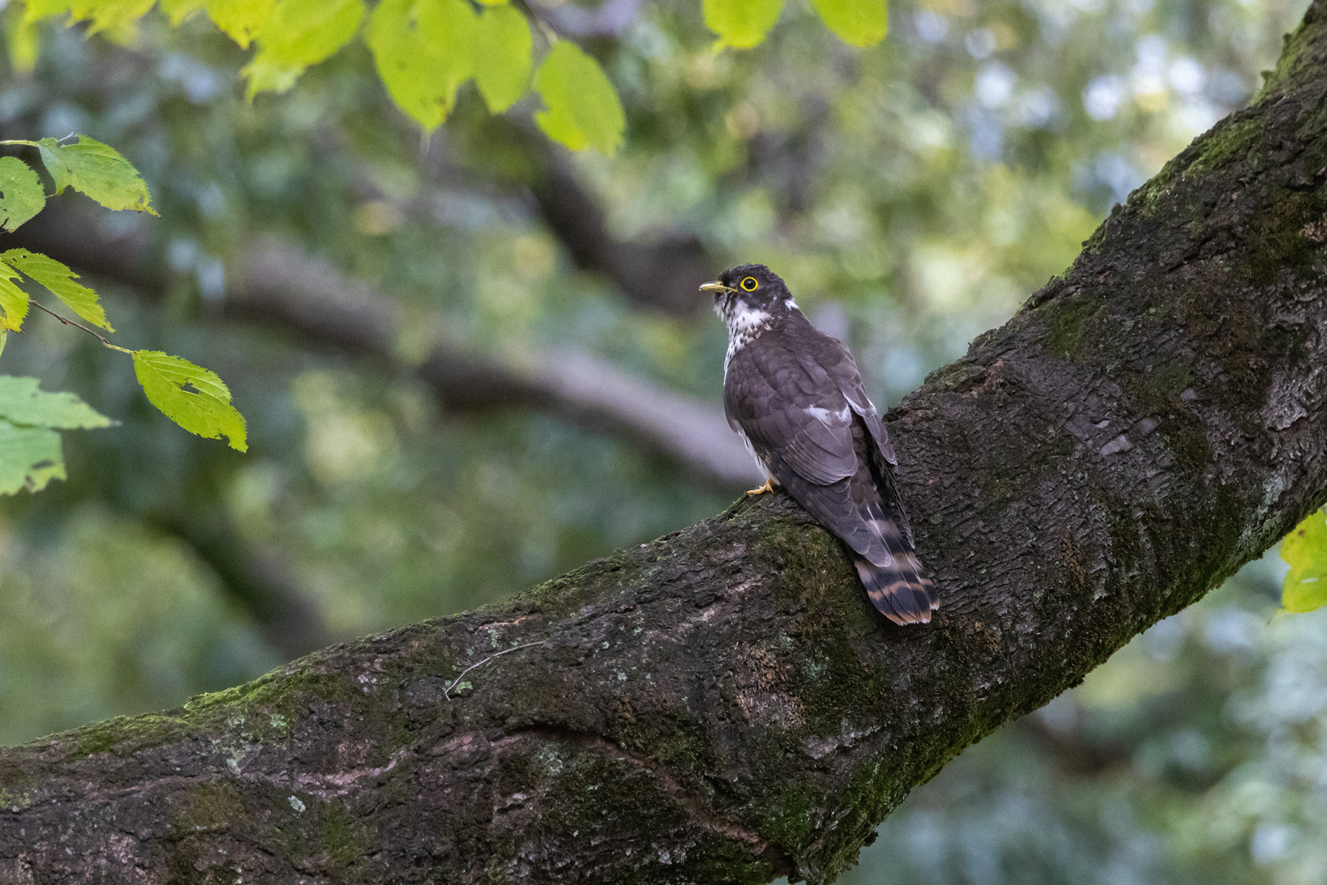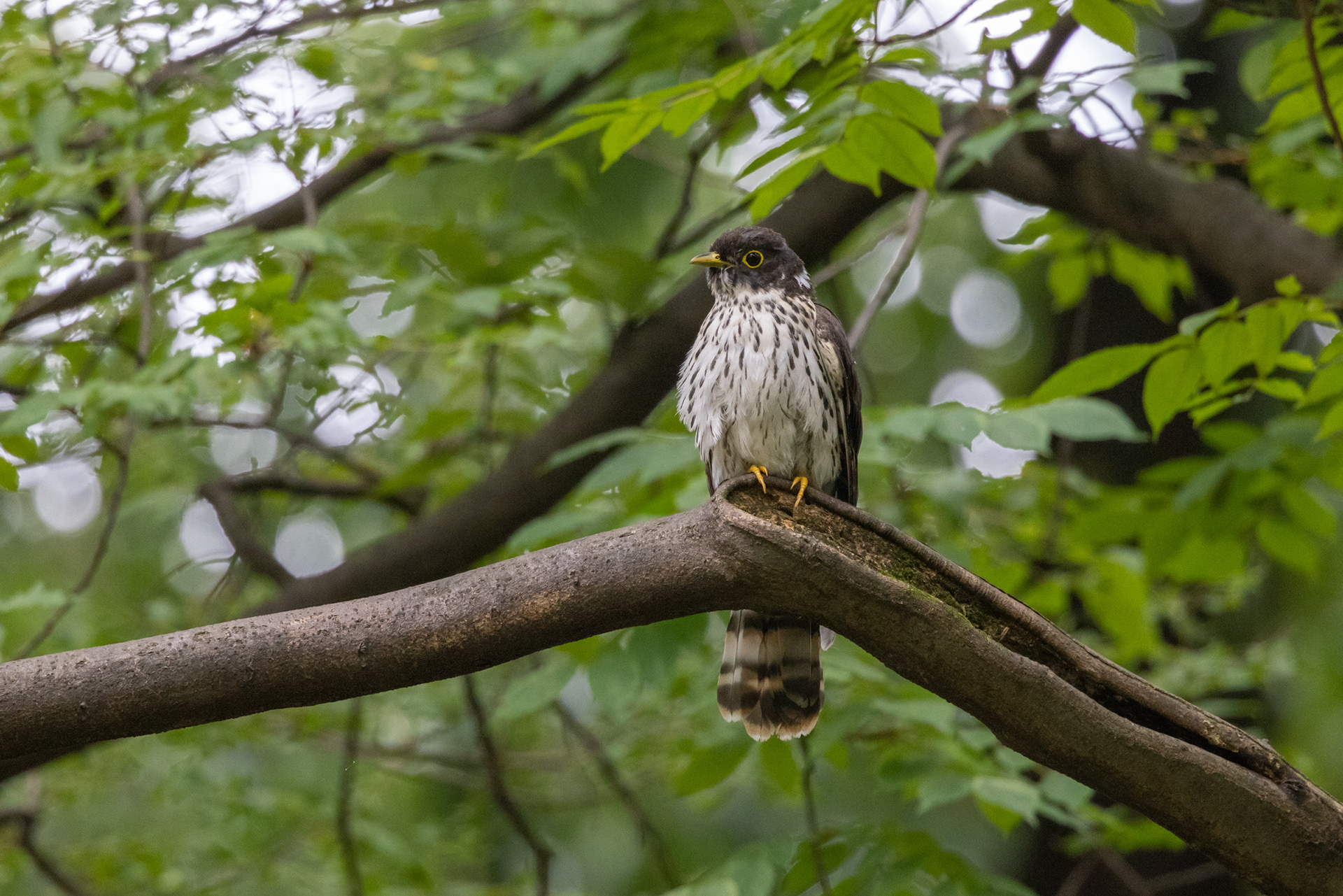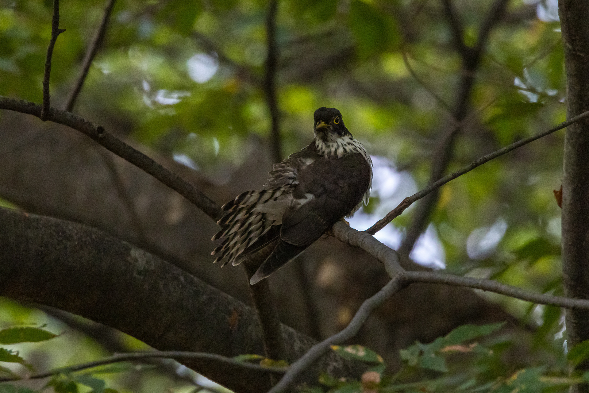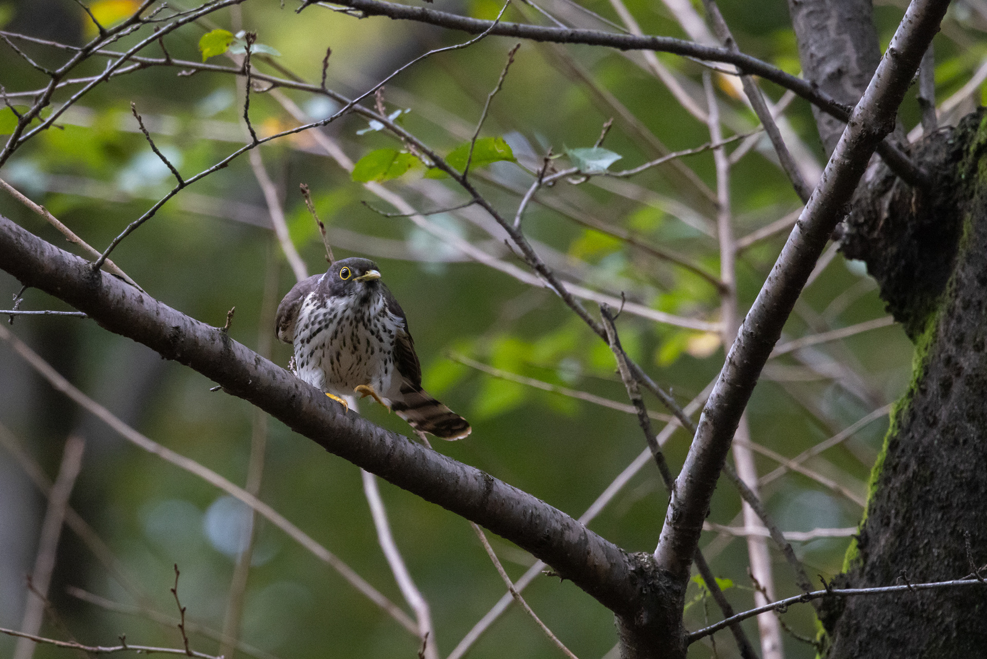 都会の公園に珍しい鳥が訪れました。区内ではほとんど観察例がないジュウイチの幼鳥です。木の低いところを飛び回り、時折地面に降りて、カマキリなど昆虫を捕らえて食べていました。4日ほど滞在し楽しませてくれました。