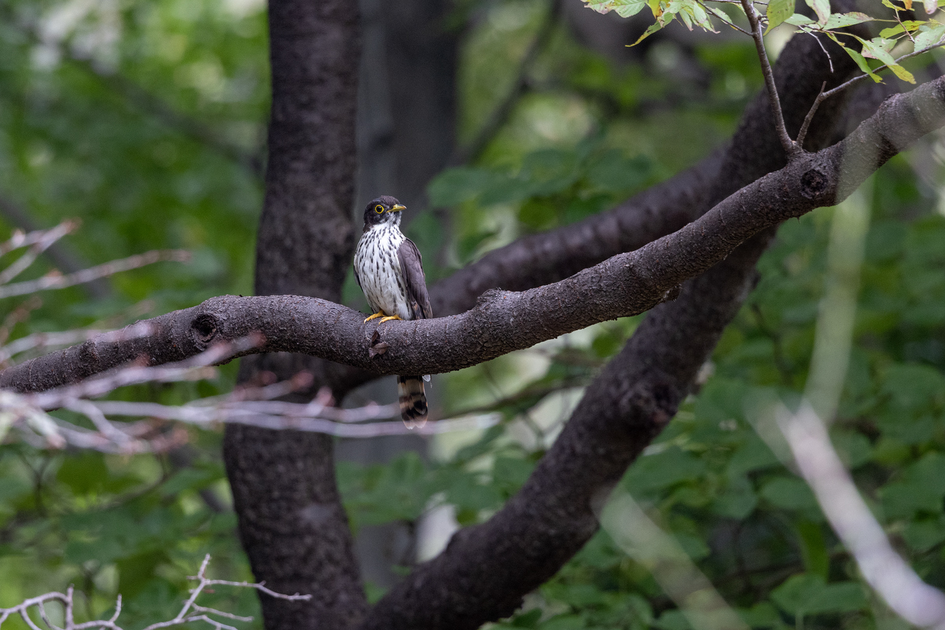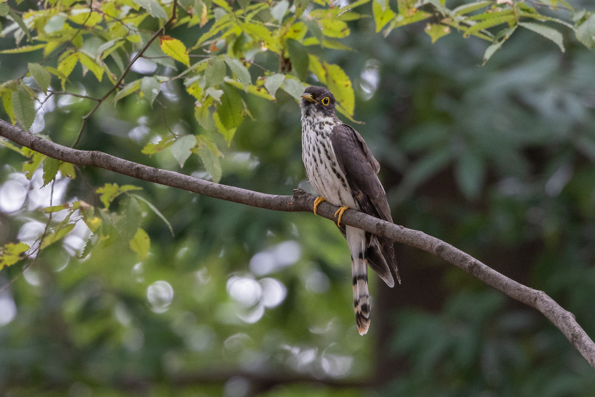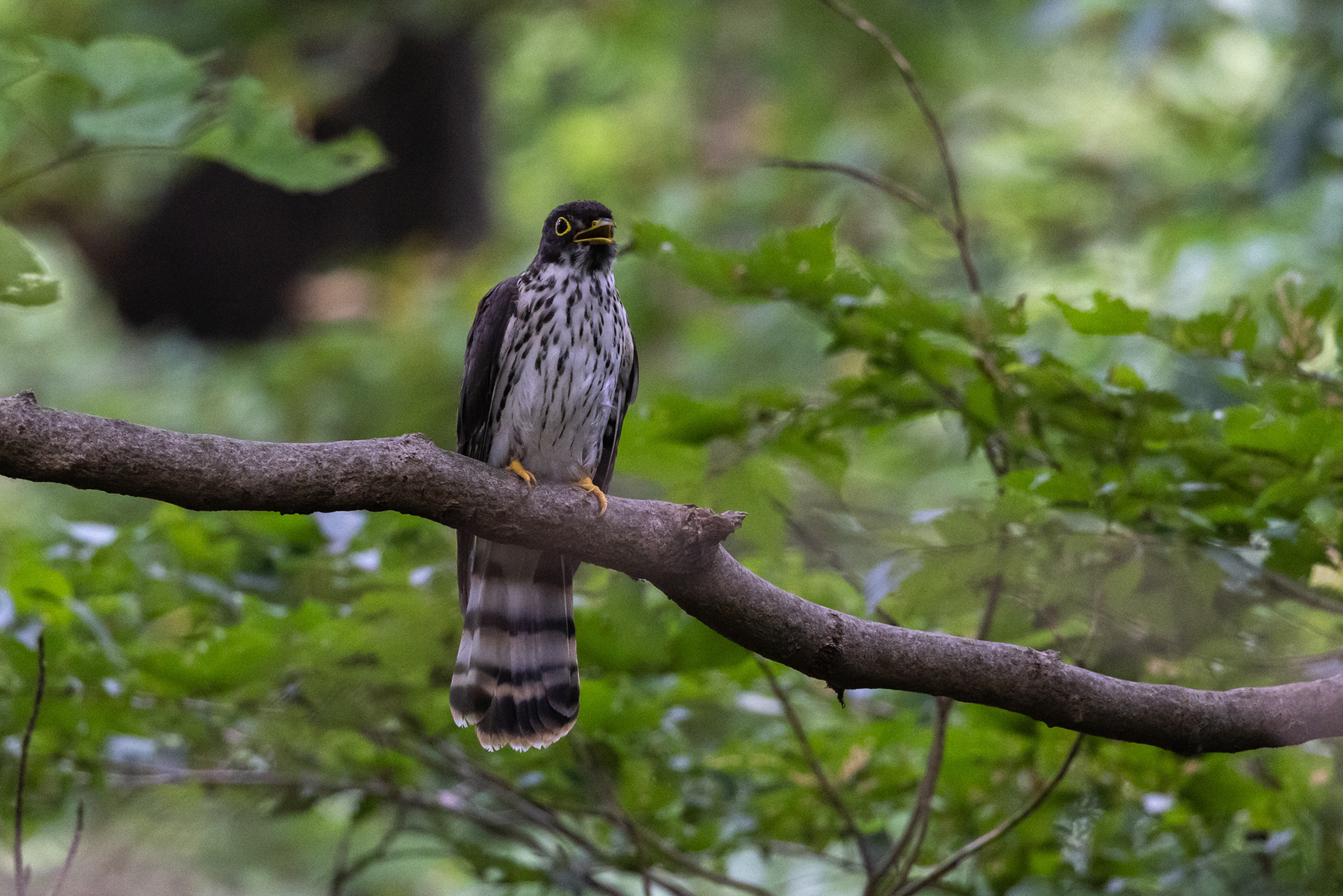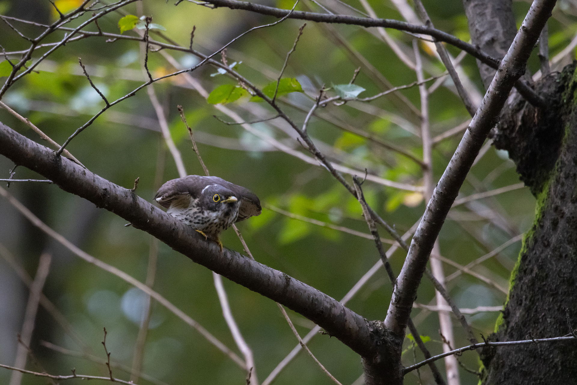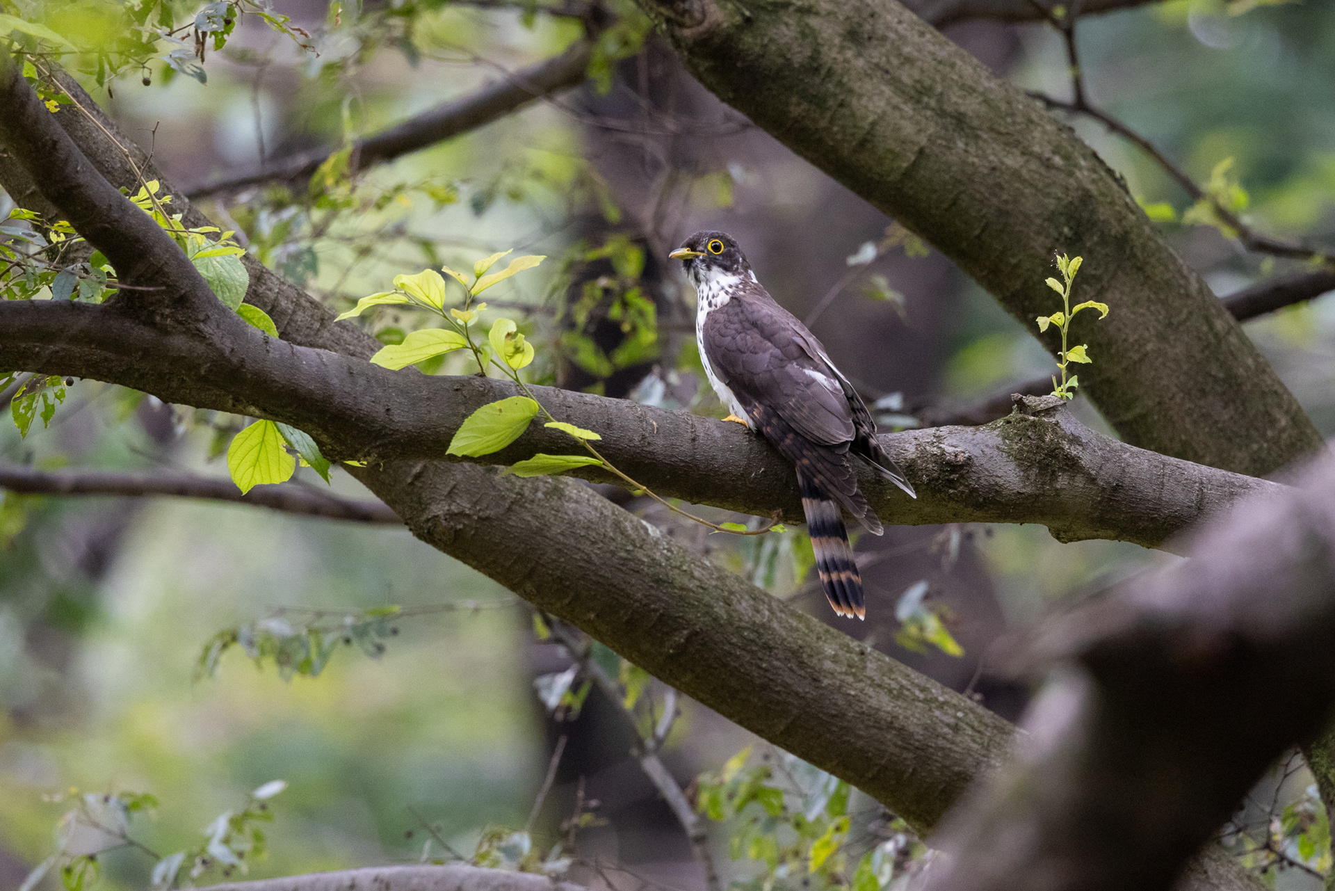 都会の公園に珍しい鳥が訪れました。区内ではほとんど観察例がないジュウイチの幼鳥です。木の低いところを飛び回り、時折地面に降りて、カマキリなど昆虫を捕らえて食べていました。4日ほど滞在し楽しませてくれました。