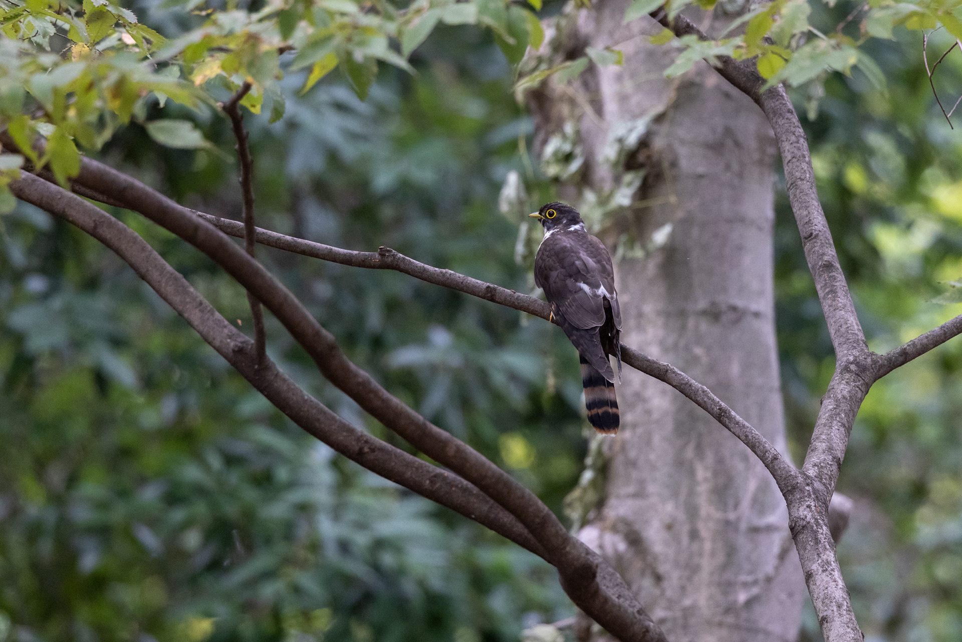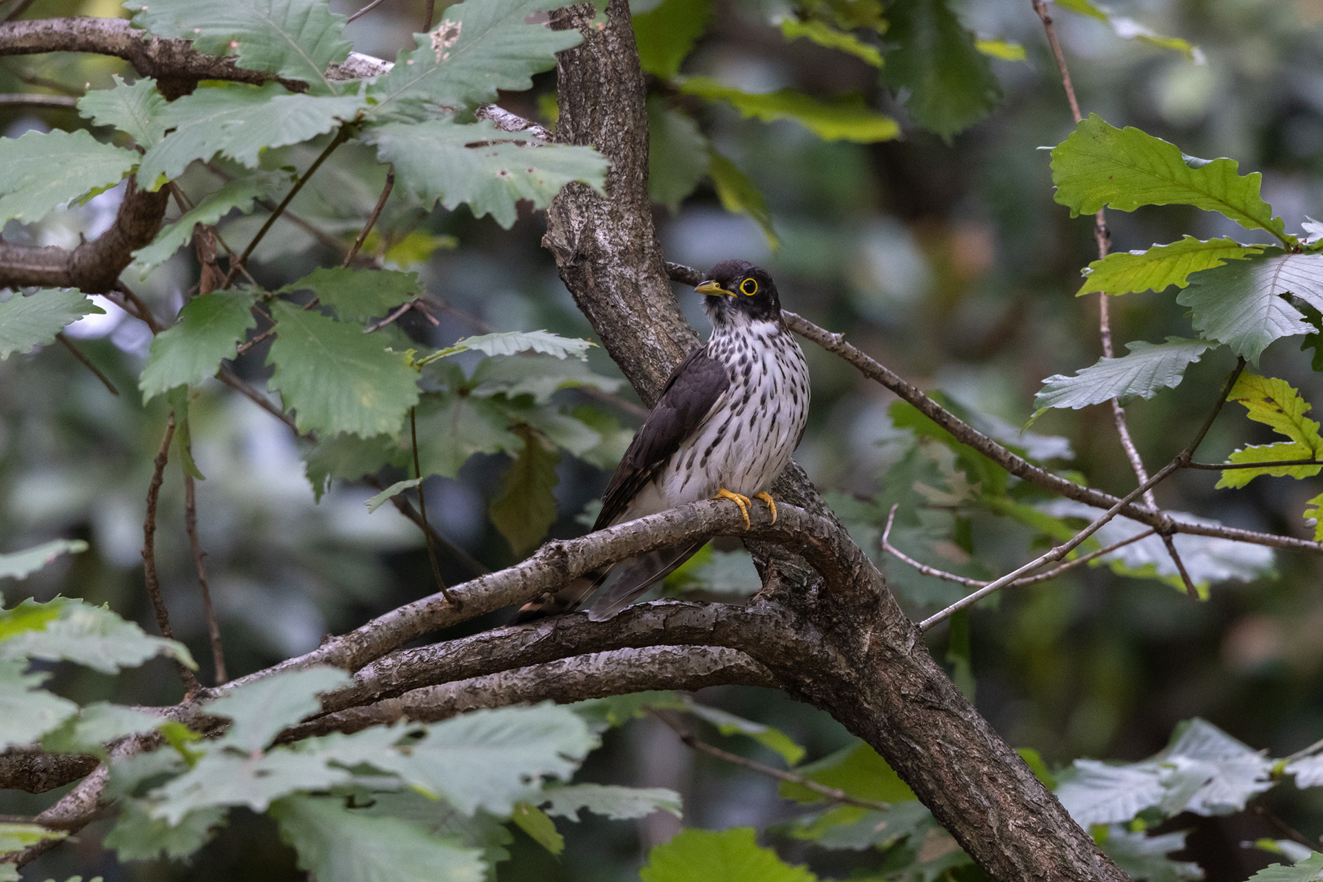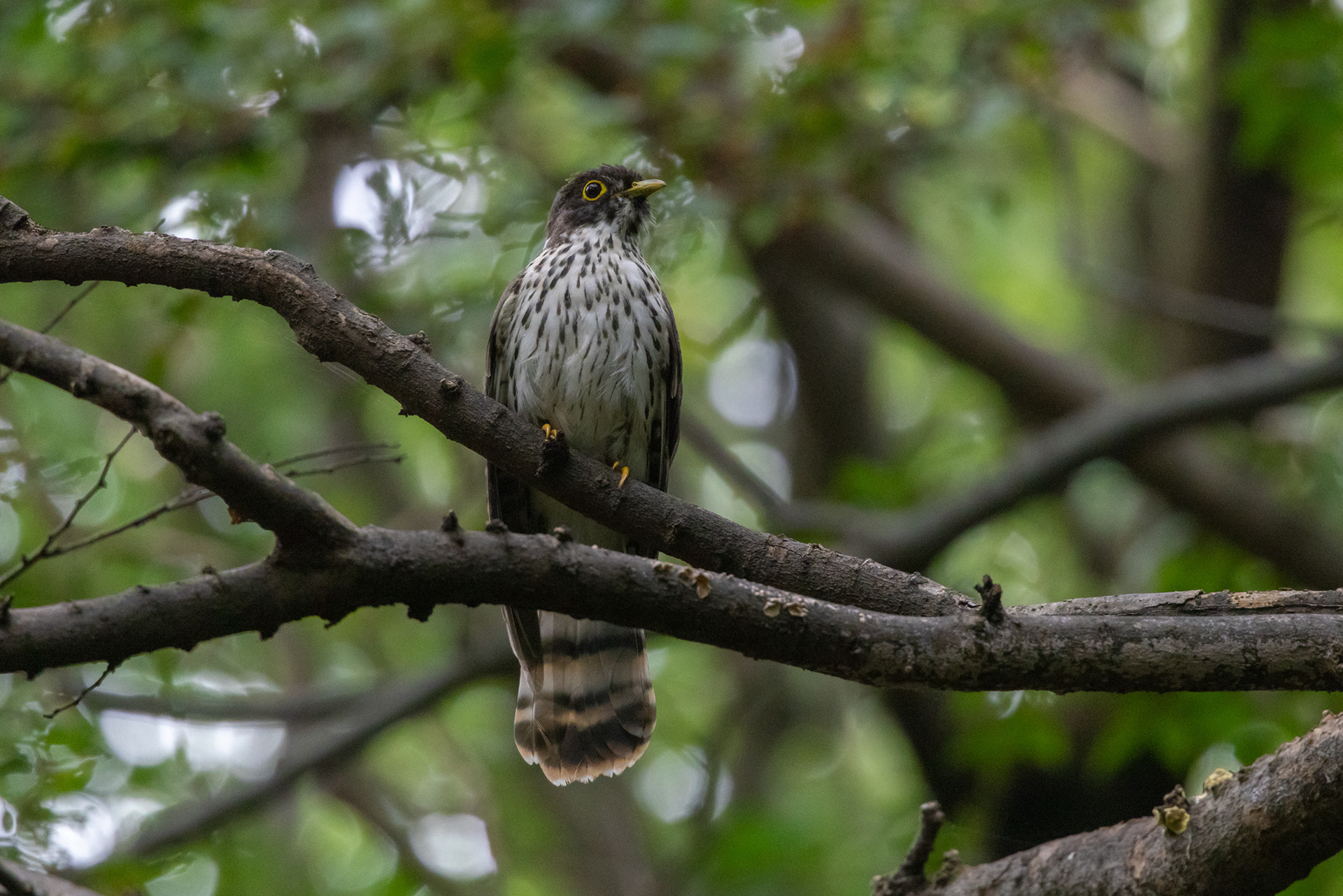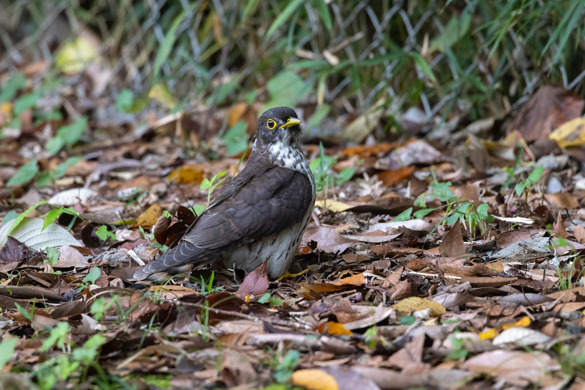 都会の公園に珍しい鳥が訪れました。区内ではほとんど観察例がないジュウイチの幼鳥です。木の低いところを飛び回り、時折地面に降りて、カマキリなど昆虫を捕らえて食べていました。4日ほど滞在し楽しませてくれました。