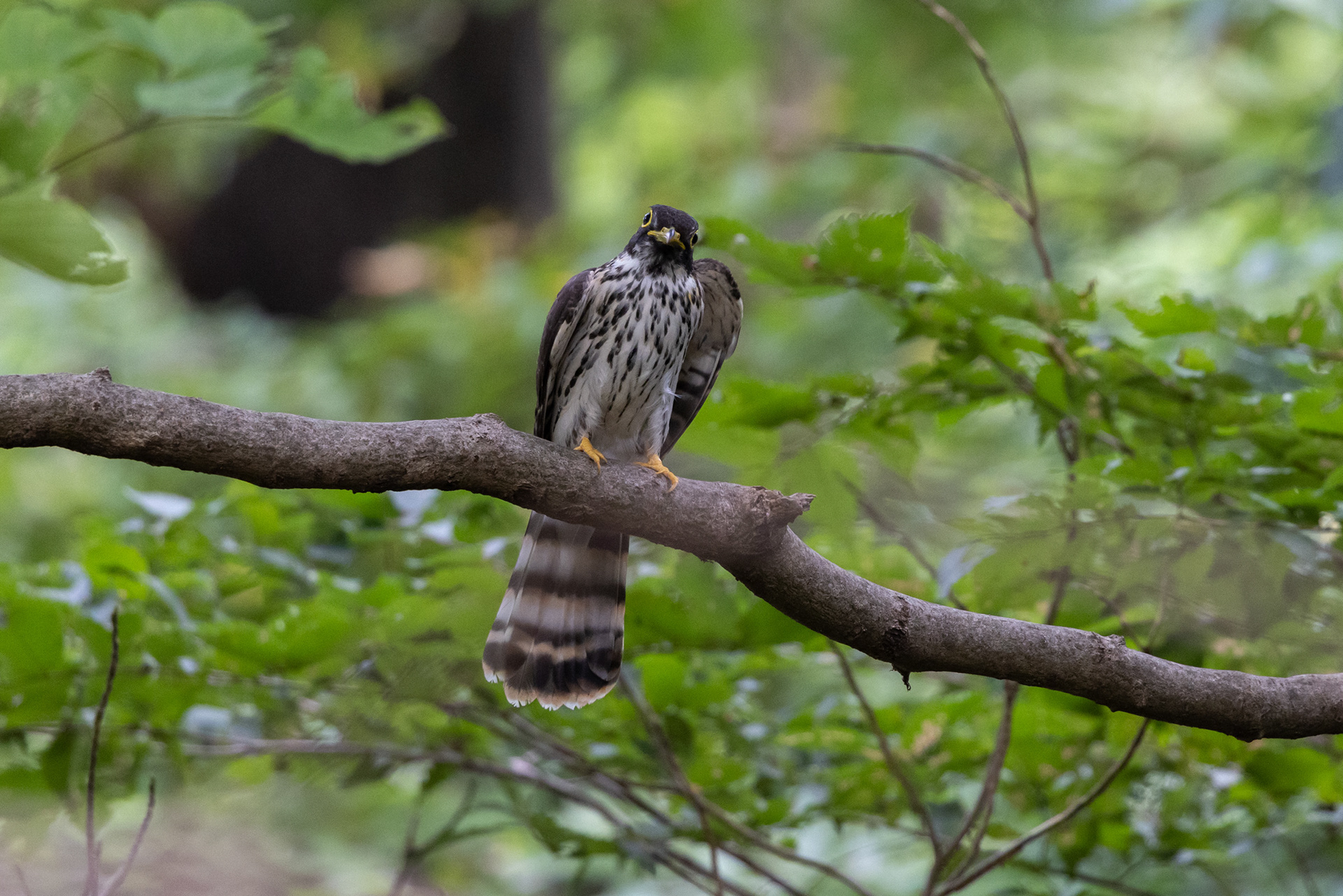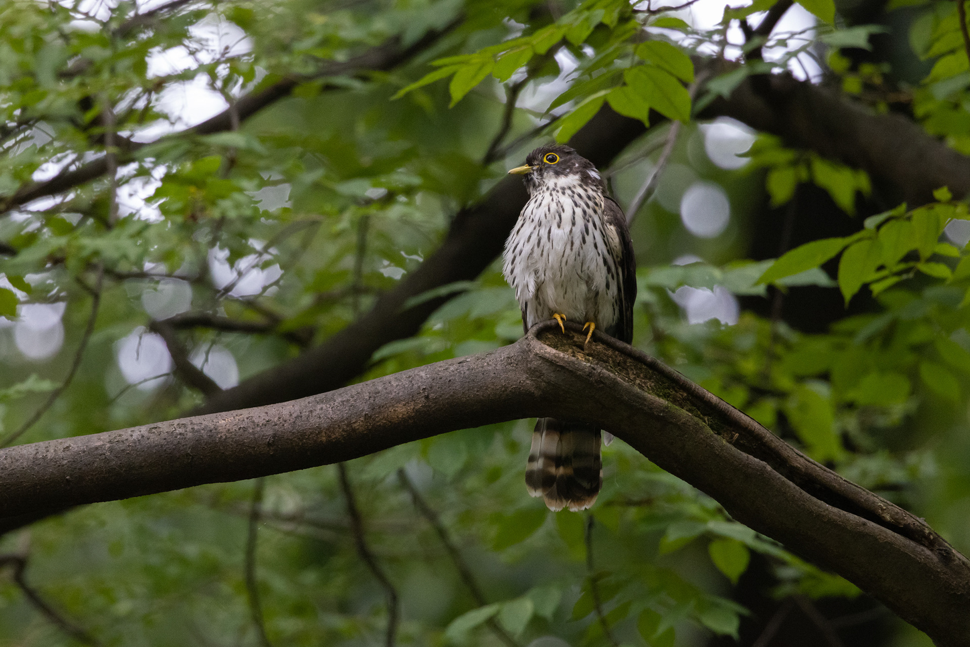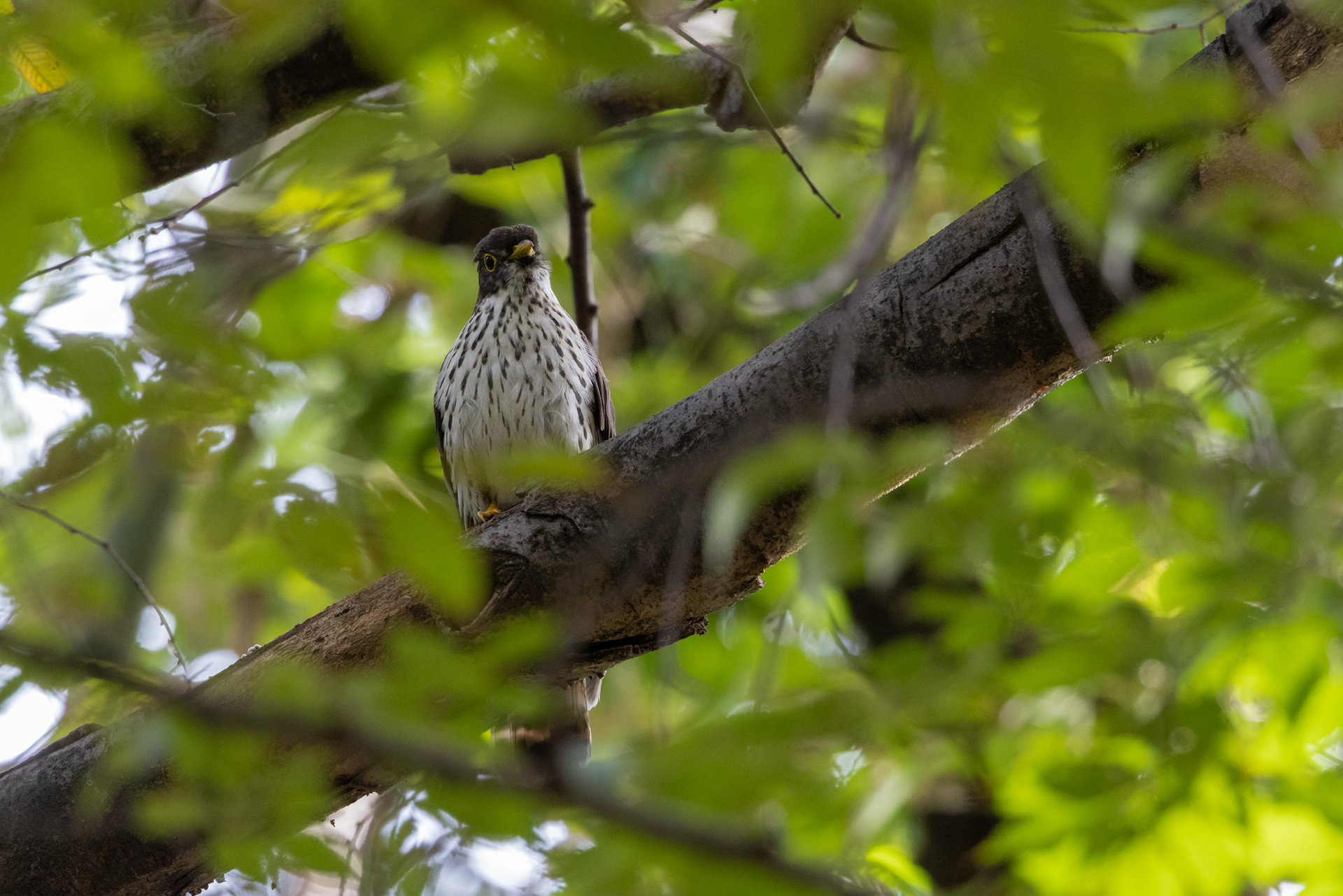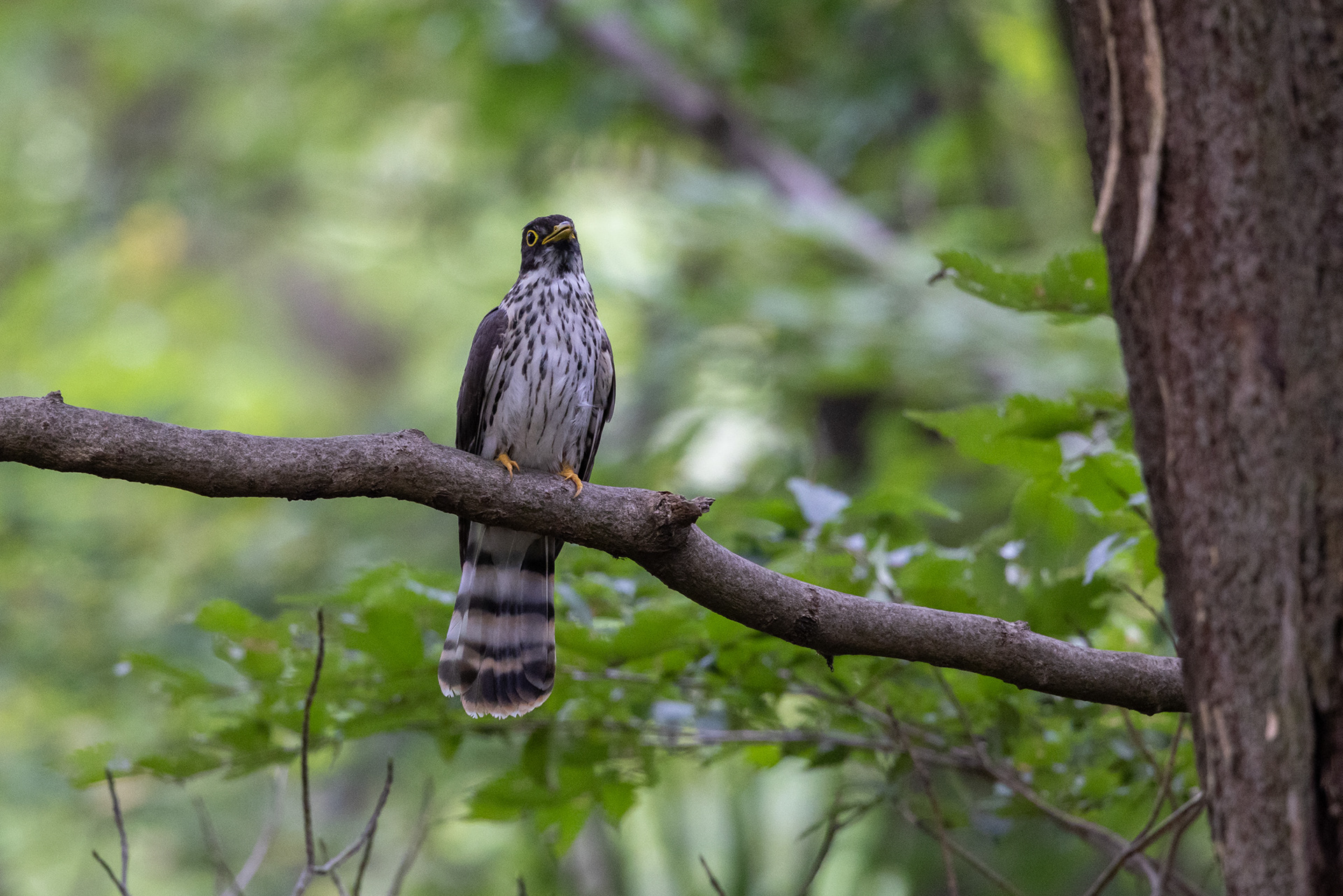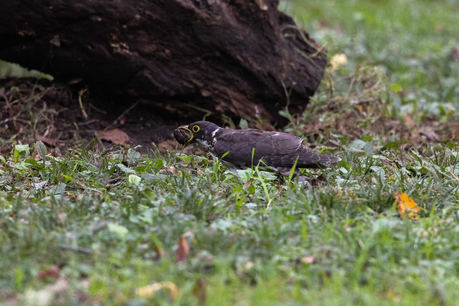 都会の公園に珍しい鳥が訪れました。区内ではほとんど観察例がないジュウイチの幼鳥です。木の低いところを飛び回り、時折地面に降りて、カマキリなど昆虫を捕らえて食べていました。4日ほど滞在し楽しませてくれました。