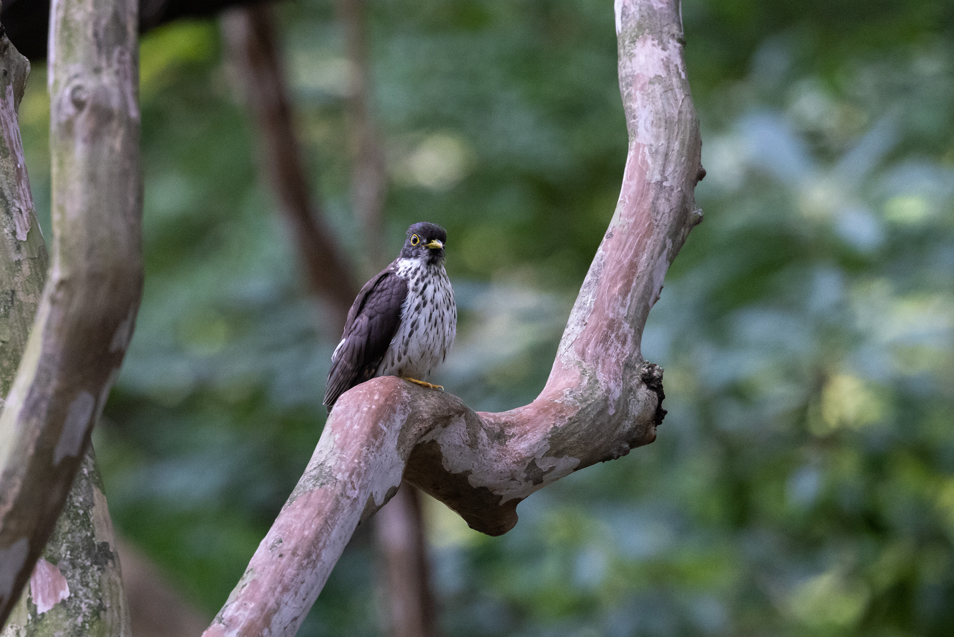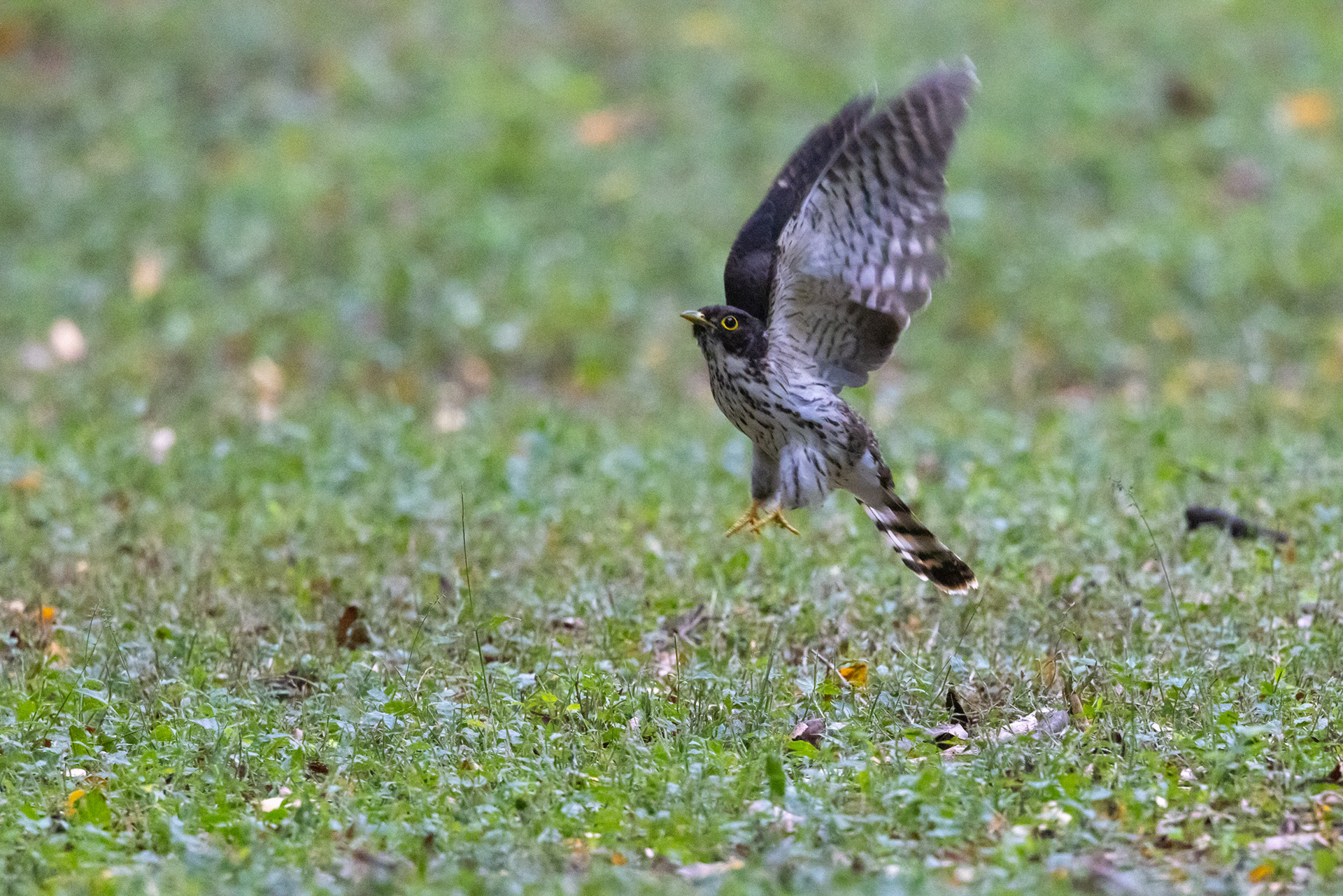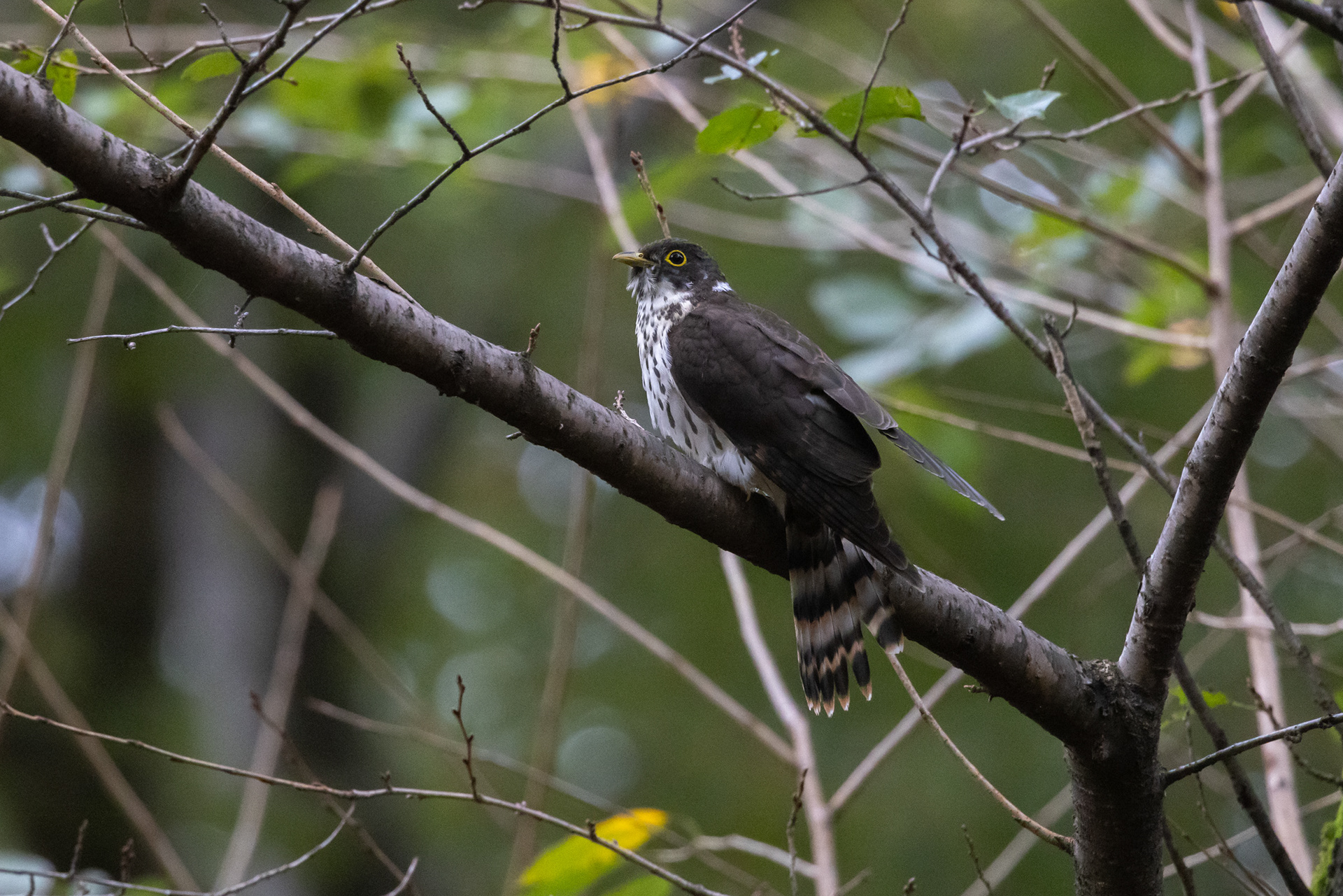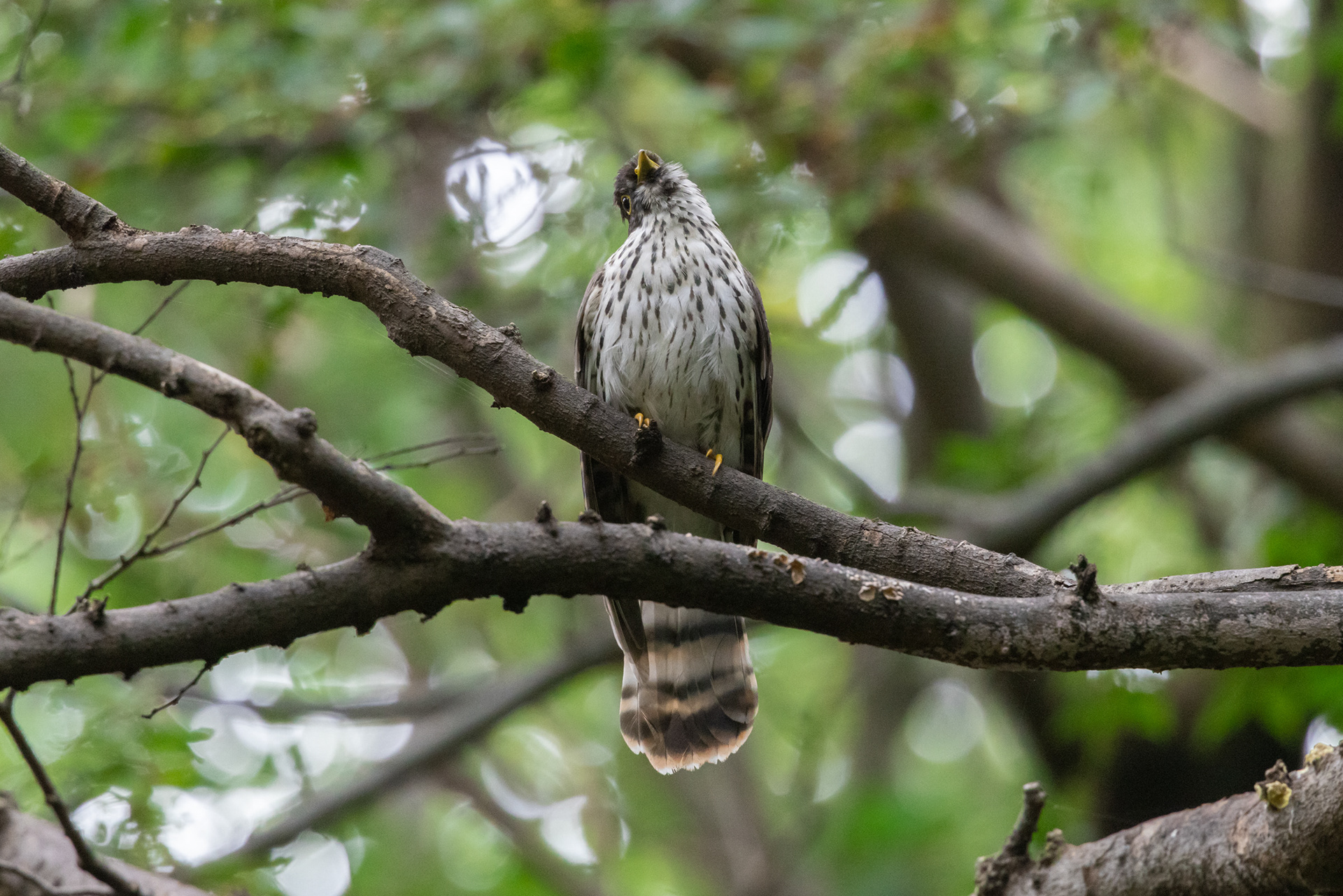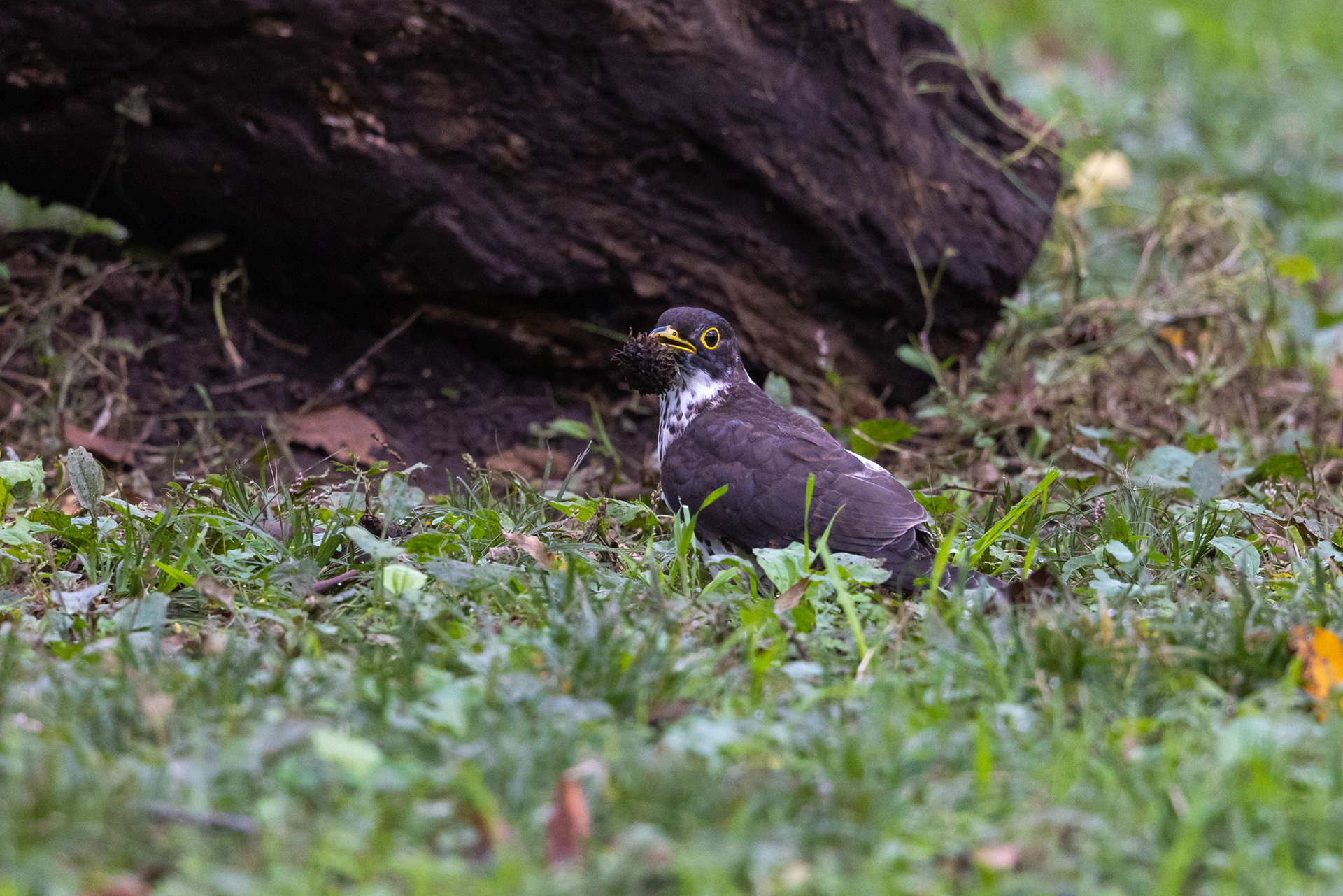 都会の公園に珍しい鳥が訪れました。区内ではほとんど観察例がないジュウイチの幼鳥です。木の低いところを飛び回り、時折地面に降りて、カマキリなど昆虫を捕らえて食べていました。4日ほど滞在し楽しませてくれました。