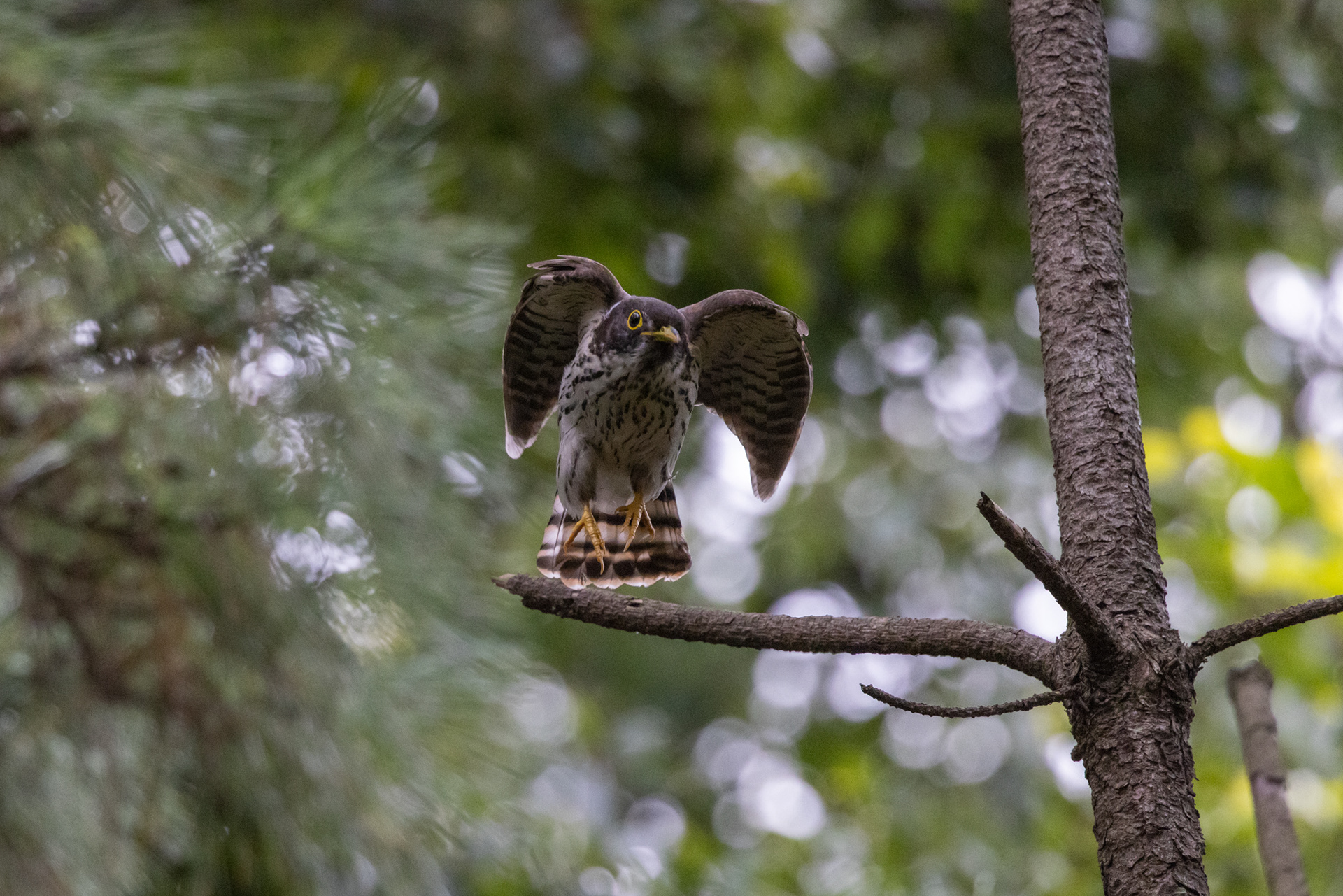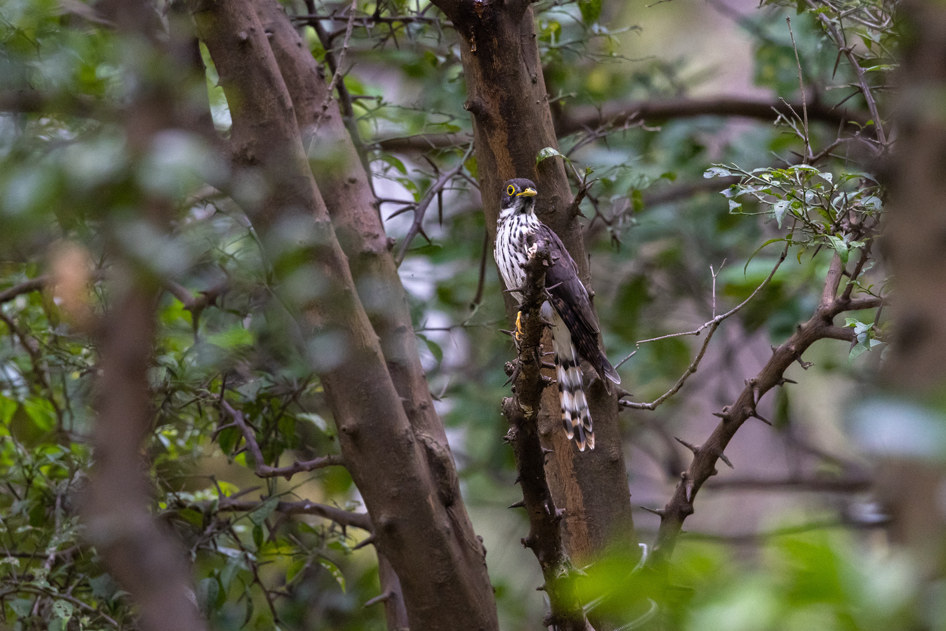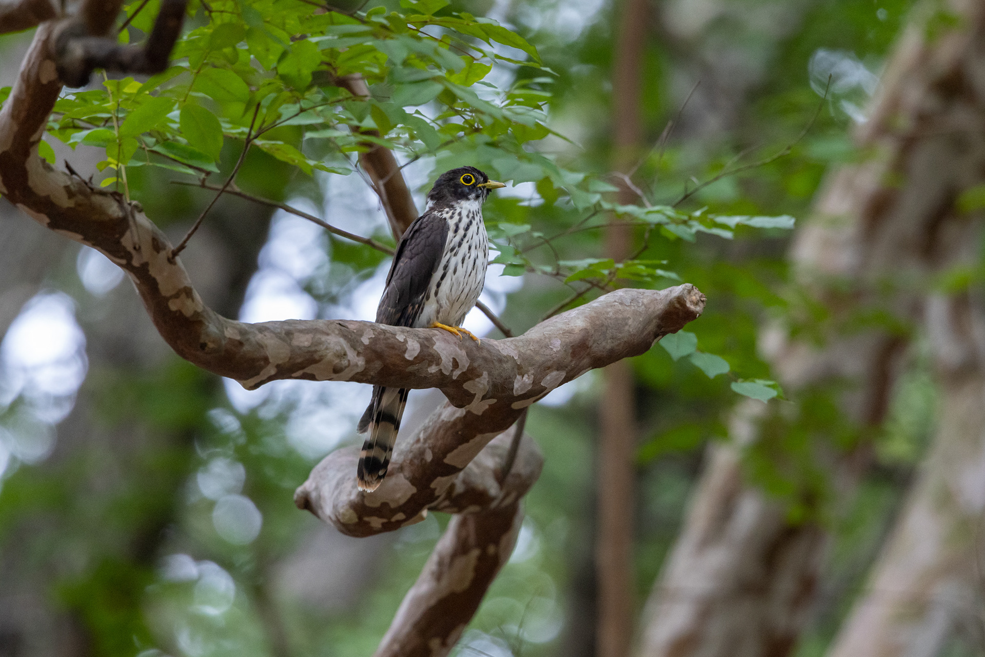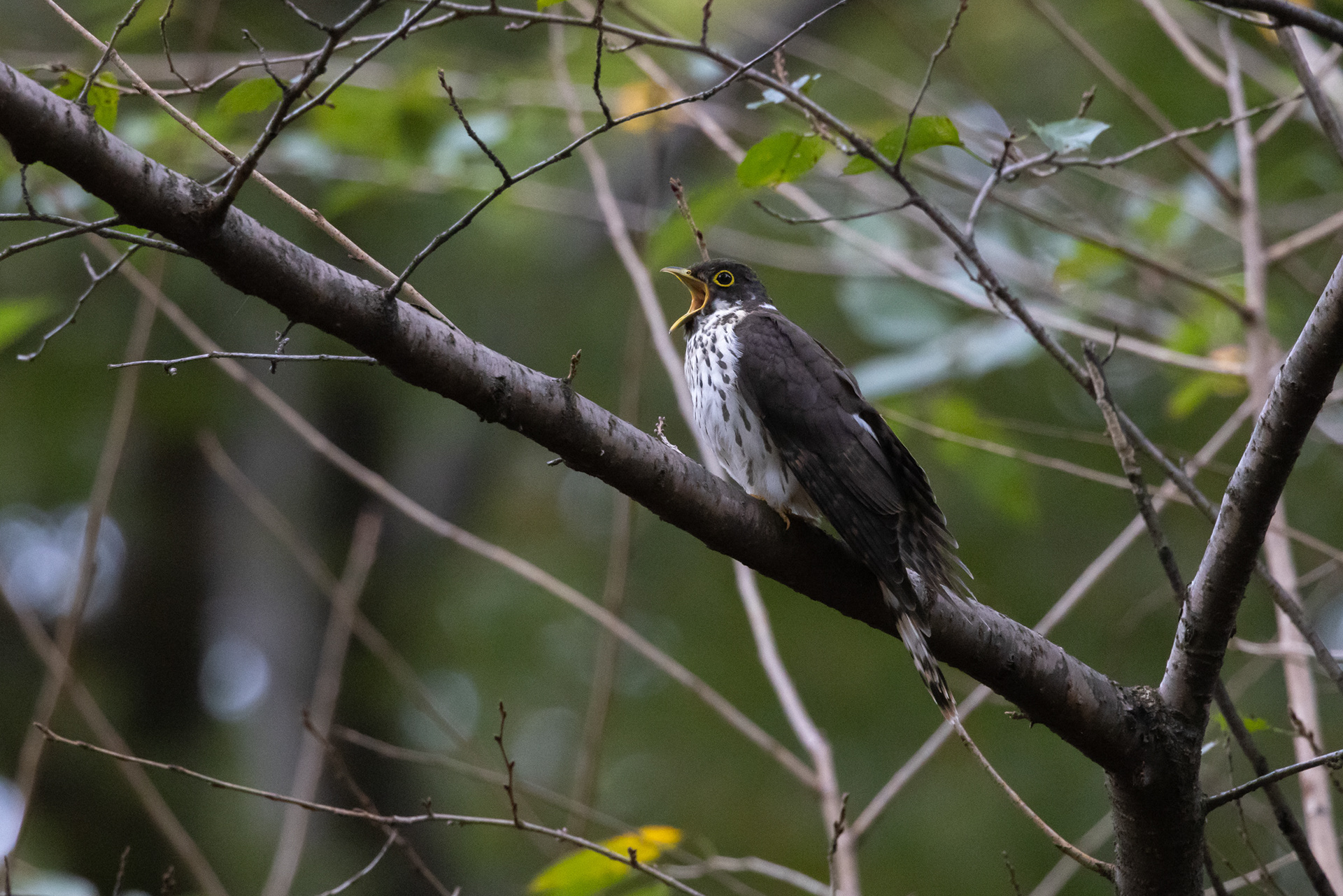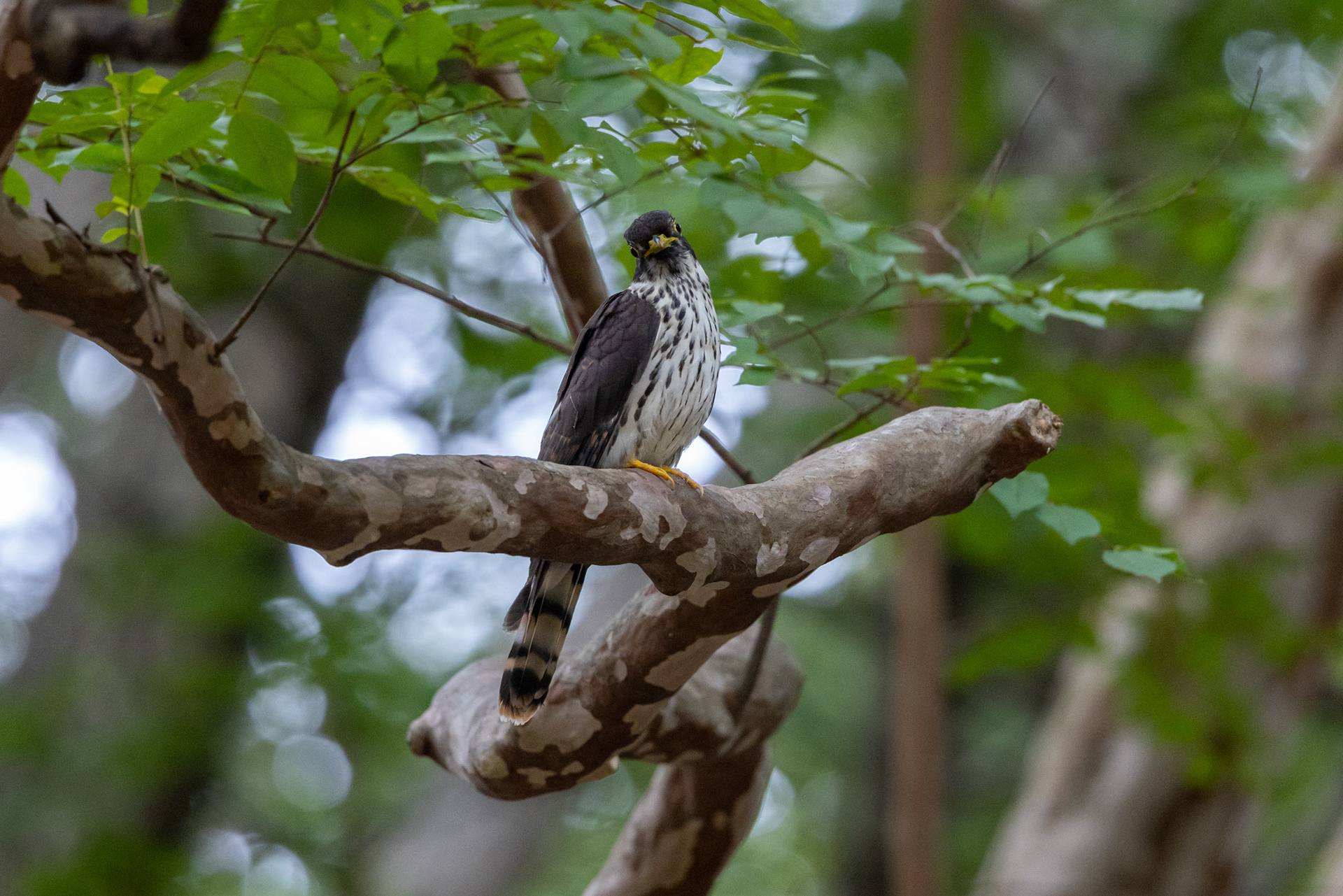 都会の公園に珍しい鳥が訪れました。区内ではほとんど観察例がないジュウイチの幼鳥です。木の低いところを飛び回り、時折地面に降りて、カマキリなど昆虫を捕らえて食べていました。4日ほど滞在し楽しませてくれました。